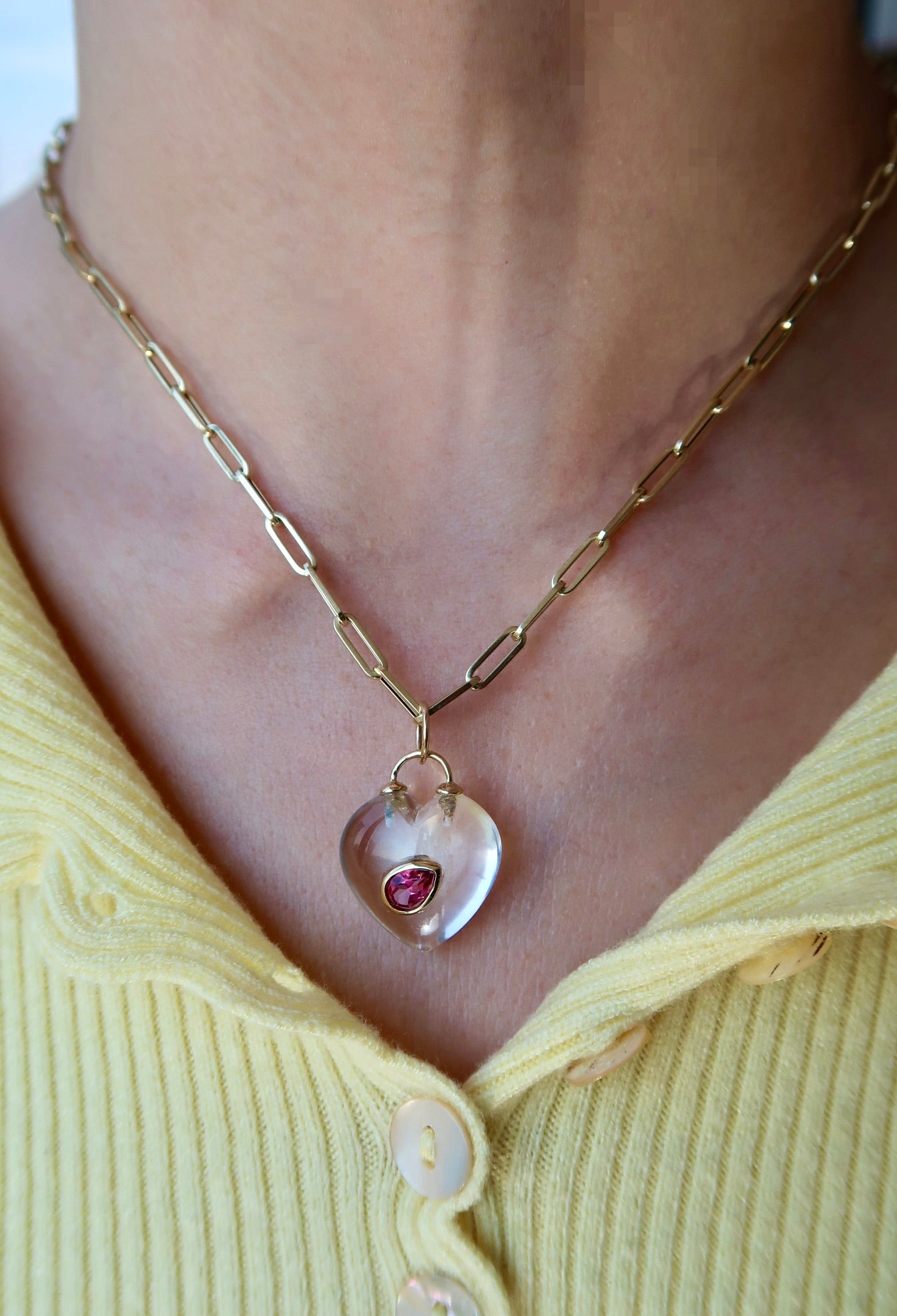 Pink Topaz Crystal Heart 14K