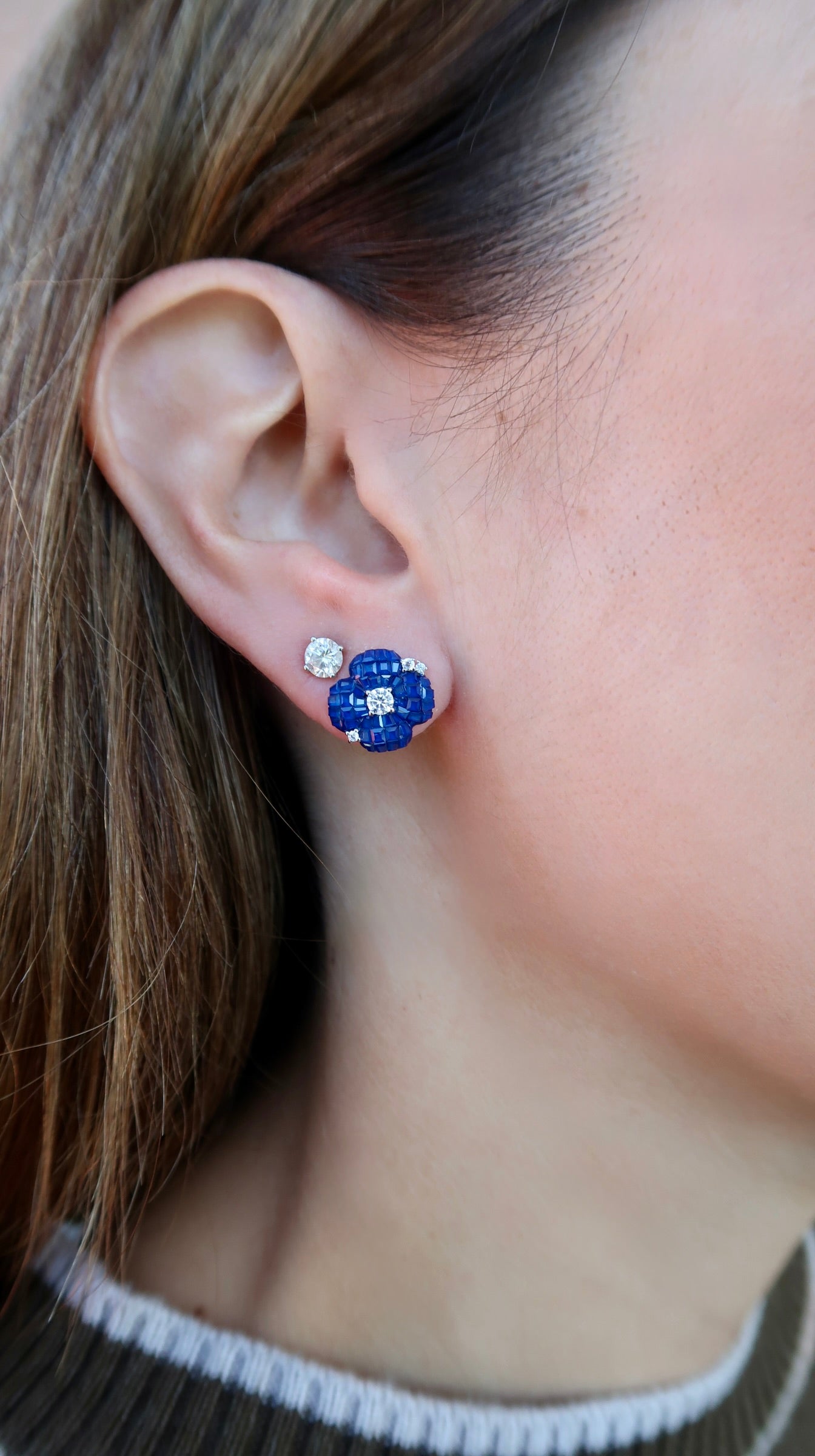 Sapphire Stone Flower Studs