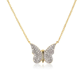 Butterfly Pave Gold Necklace