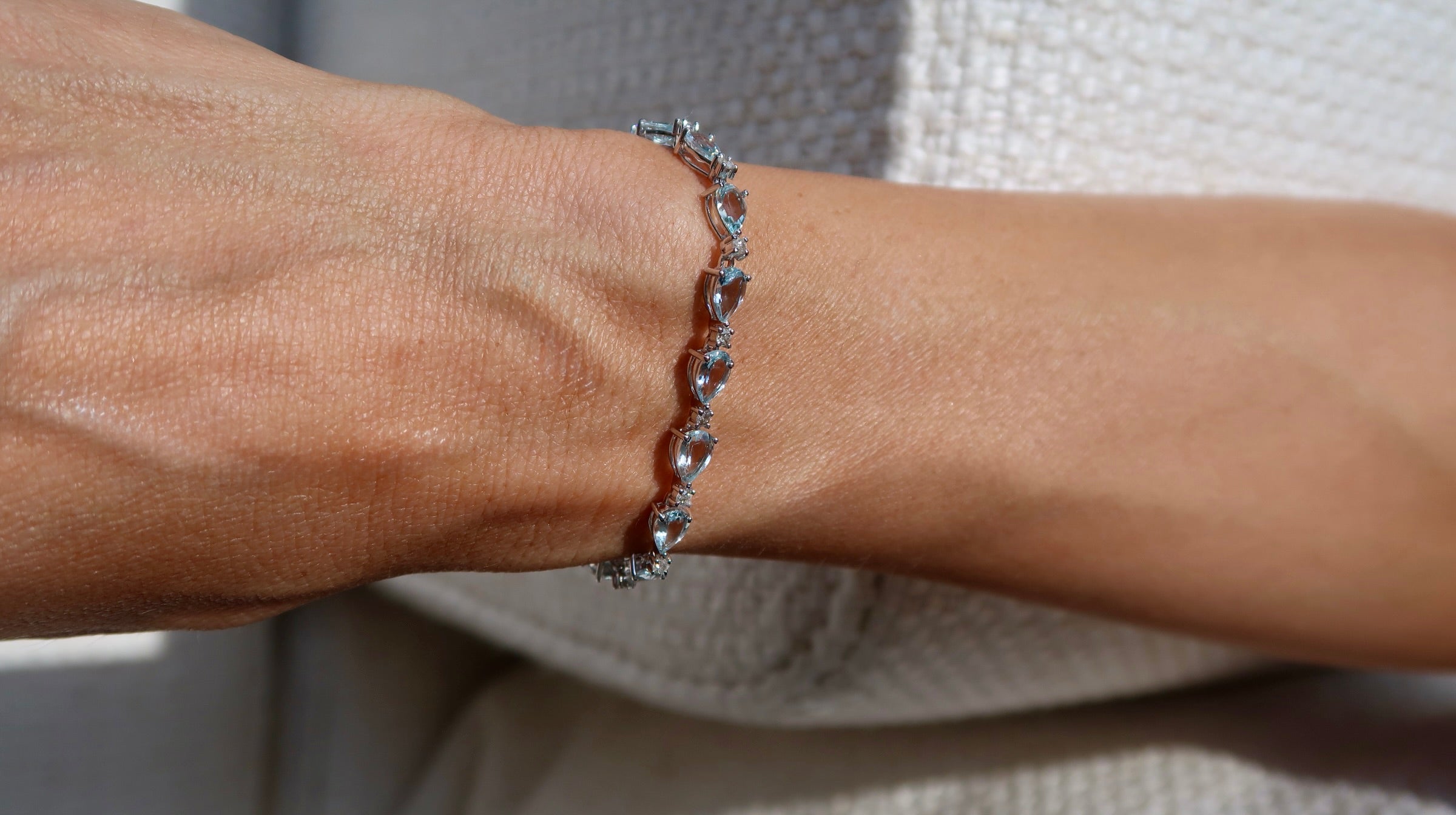 Diamond and Aquamarine Pear White Gold Bracelet 14k