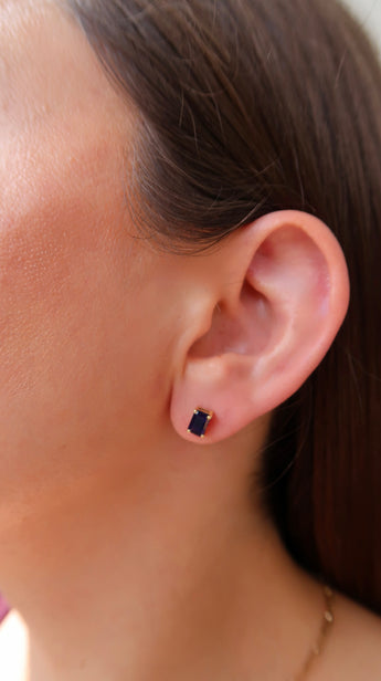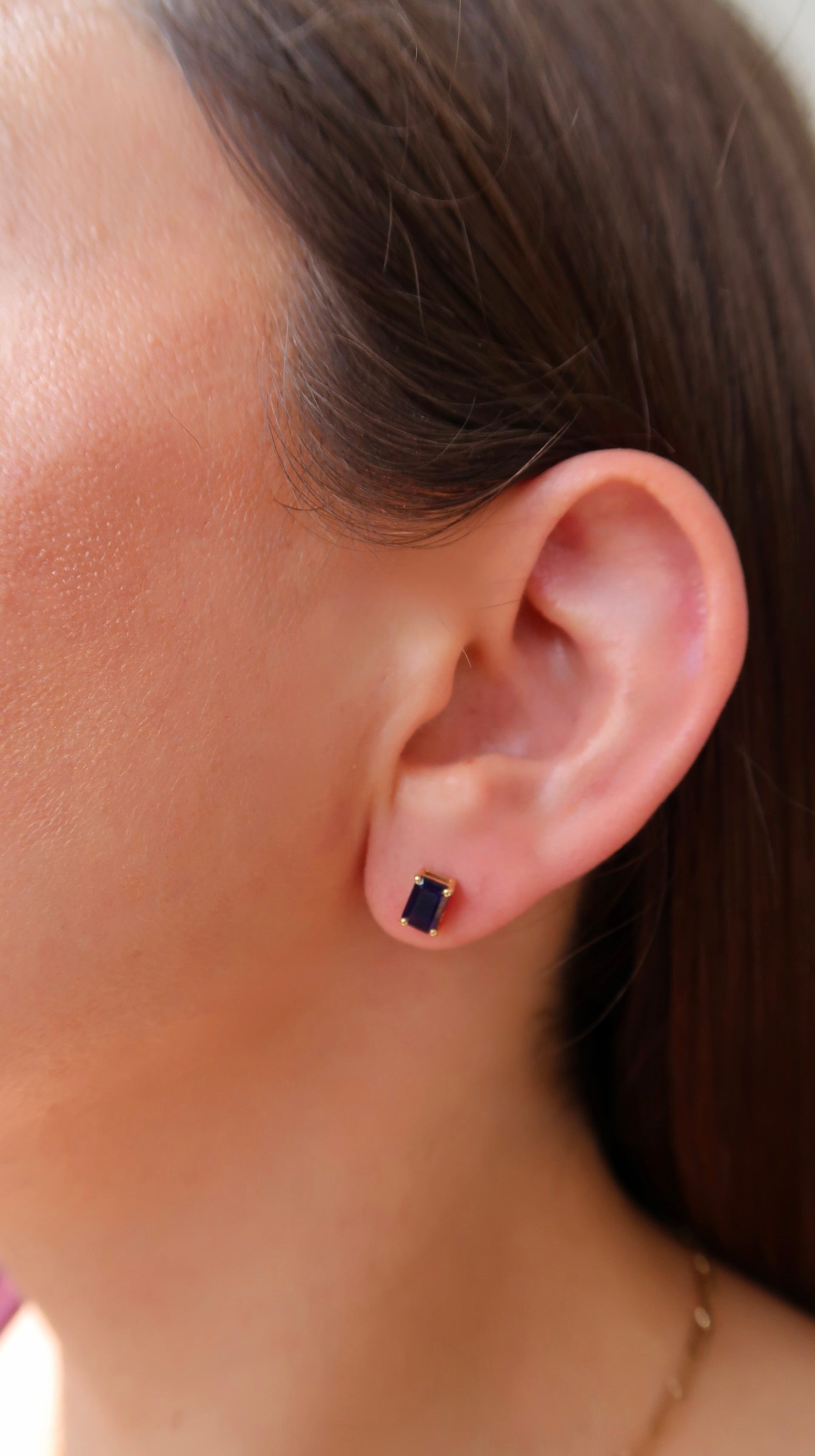 Emerald-Cut Sapphire Yellow Gold Studs 14k
